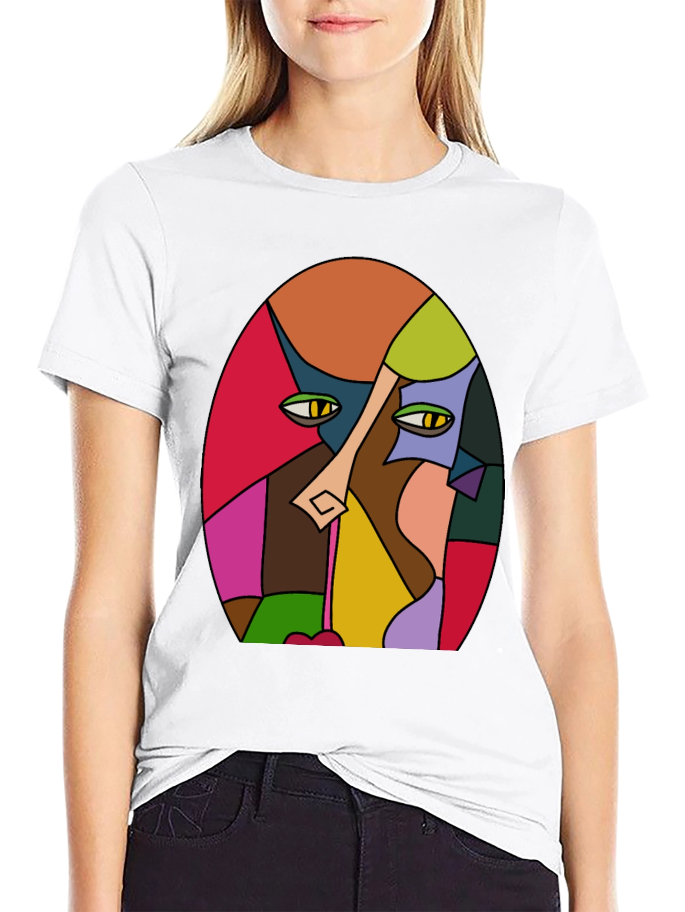 Express your unique style with this eye-catching t-shirt featuring an abstract face design. The shirt showcases a colorful, geometric interpretation of a face, creating a modern and artistic statement. Made from a comfortable and breathable black fabric, this tee is perfect for everyday wear. The bold graphic print ensures you'll stand out from the crowd. Pair it with jeans or shorts for a casual yet stylish look. Ideal for art lovers and those who appreciate creative designs. A must-have addition to your wardrobe. Get yours today!