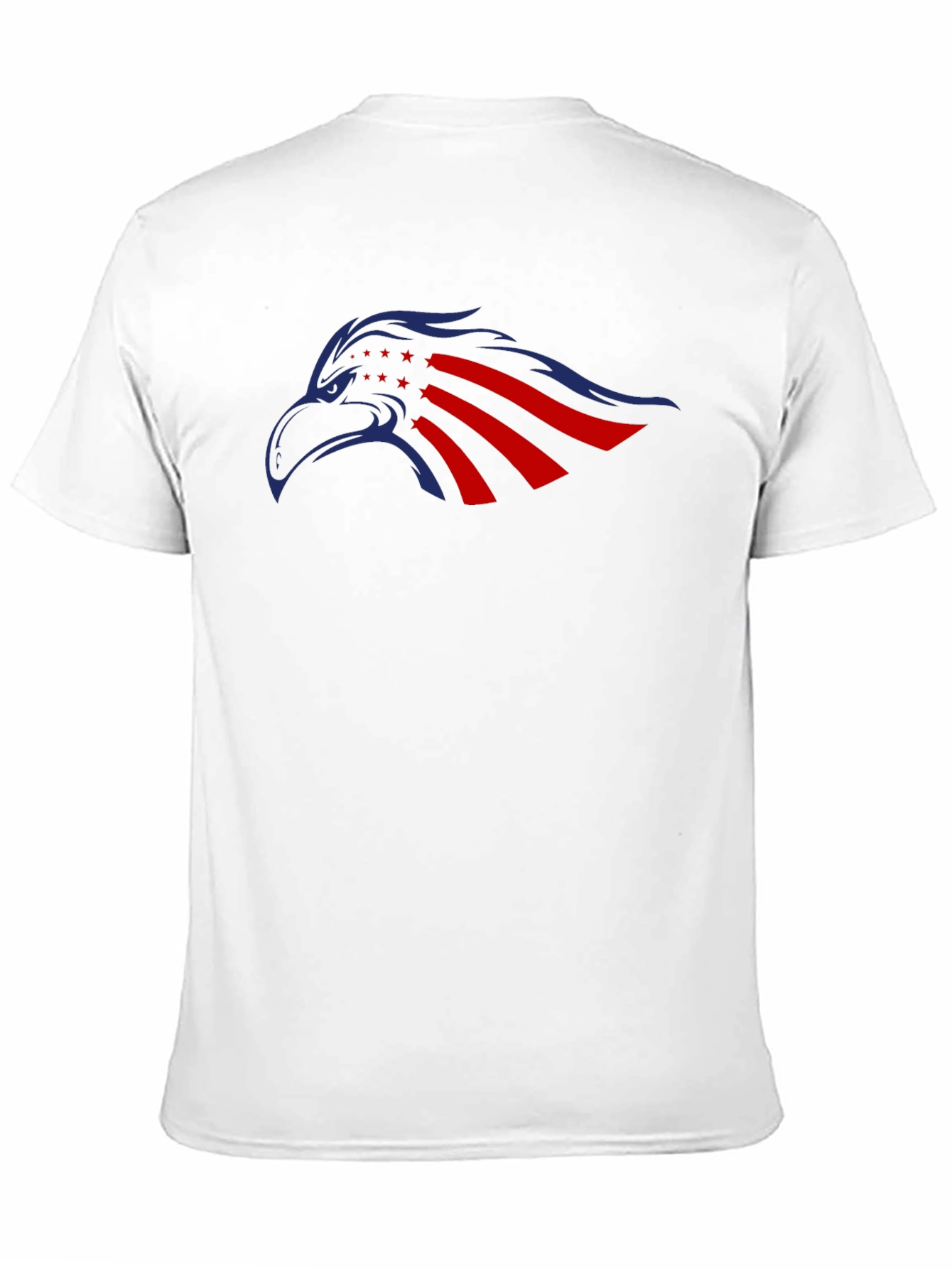 Show off your patriotic side with this eye-catching black t-shirt. Featuring a striking graphic of an American eagle, rendered in bold blue and red, this tee combines classic style with a modern edge. The eagle design incorporates stars and stripes, adding a touch of national pride. Made from comfortable, breathable fabric, this shirt is perfect for casual wear, sporting events, or celebrating holidays like the 4th of July. The short-sleeve design keeps you cool and comfortable all day long. Upgrade your wardrobe with this unique and stylish t-shirt.