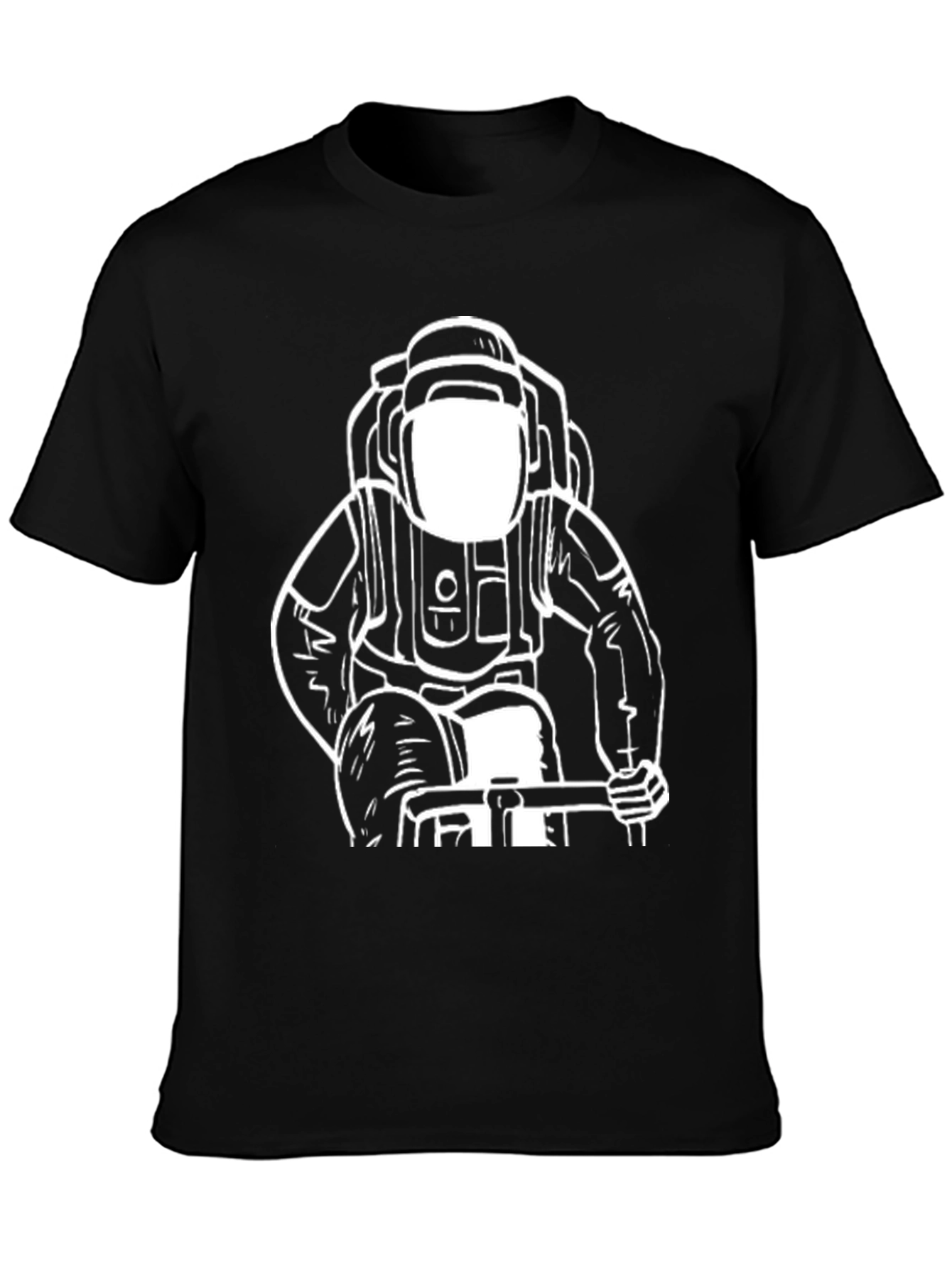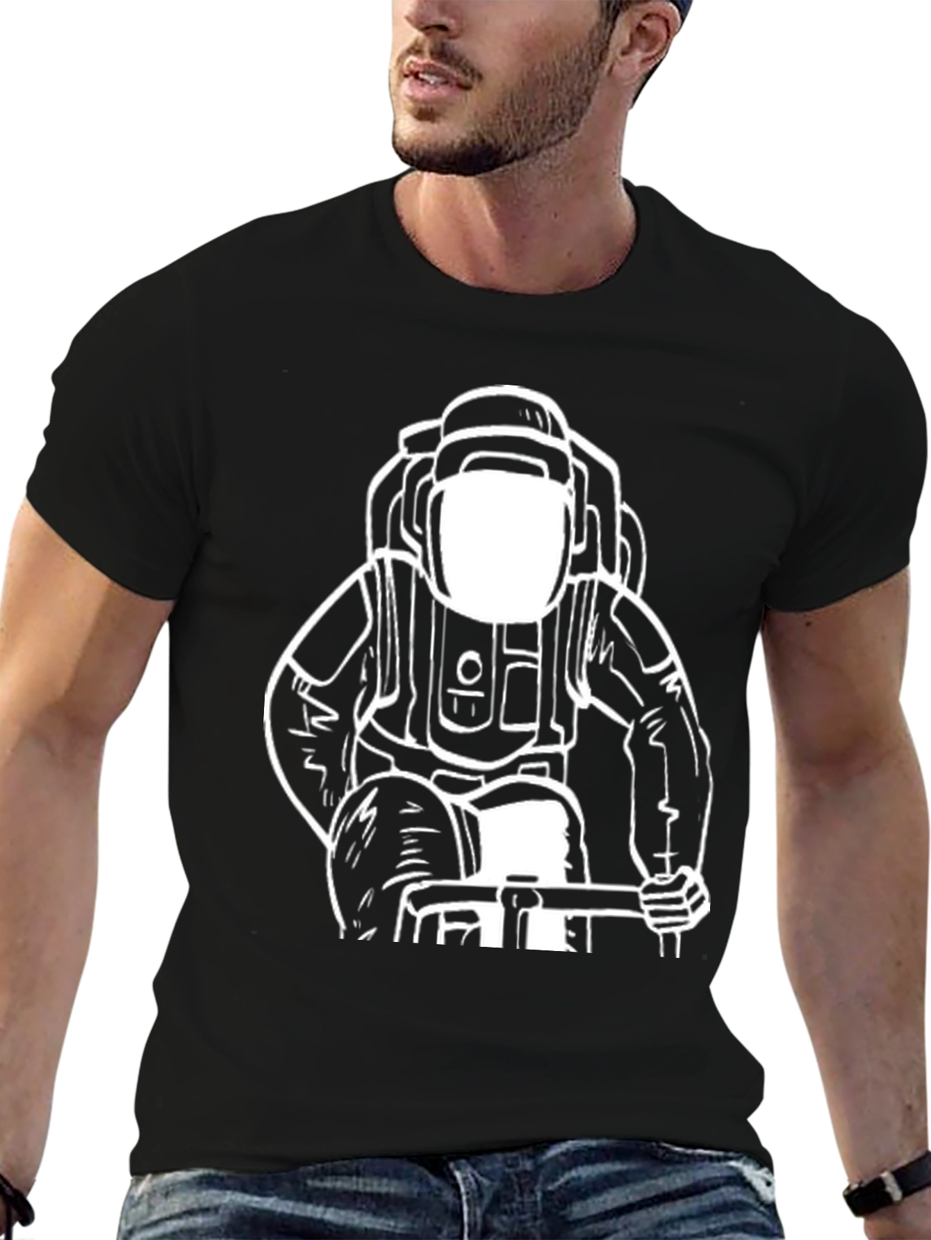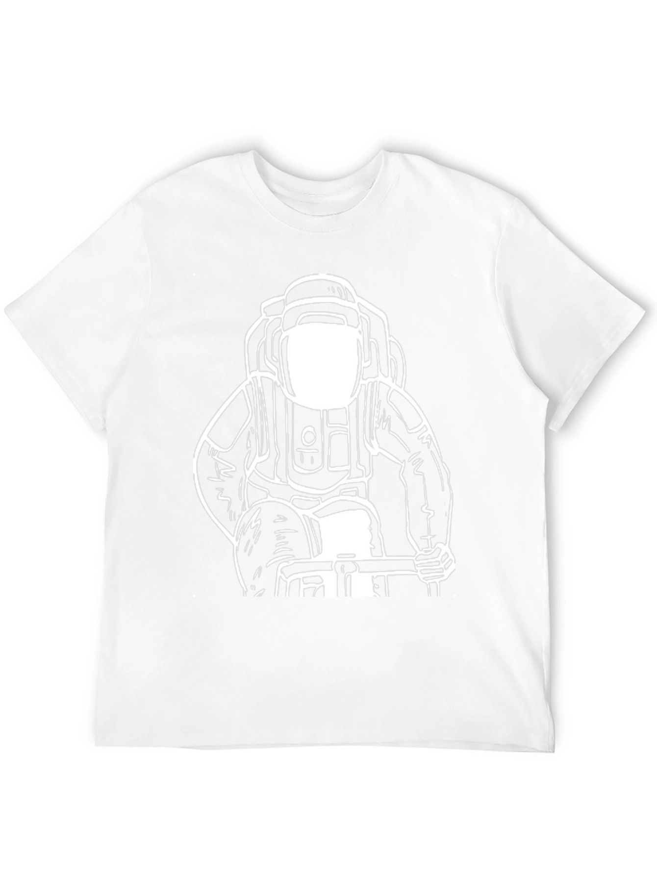 Explore the cosmos in style with this unique graphic tee! Featuring a bold, stylized astronaut design in contrasting white print against a classic black backdrop, this t-shirt is sure to turn heads. The design showcases an astronaut in action, potentially piloting a vehicle, adding an adventurous touch to your wardrobe. Made from a comfortable fabric, it's perfect for everyday wear, casual outings, or showing off your love for space exploration. Pair it with jeans or shorts for a relaxed look. Get ready to launch your style into orbit!