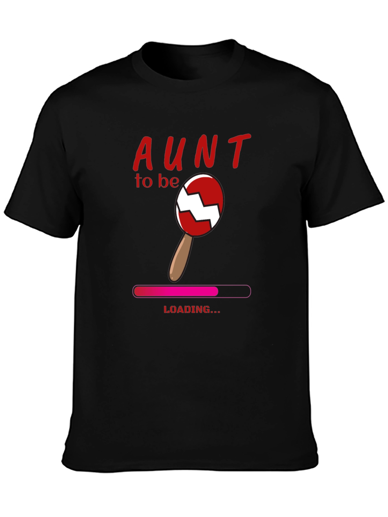 Celebrate the upcoming arrival with this unique 'Aunt To Be Loading' t-shirt! This black tee features a playful design with the text 'AUNT to be', a cute baby rattle graphic, and a 'LOADING...' progress bar. It's perfect for announcing your excitement at baby showers, family gatherings, or simply as a fun everyday wear during the anticipation of a new family member. Made from a comfortable, breathable fabric, this t-shirt ensures a relaxed fit. A delightful and memorable way to share the joy!