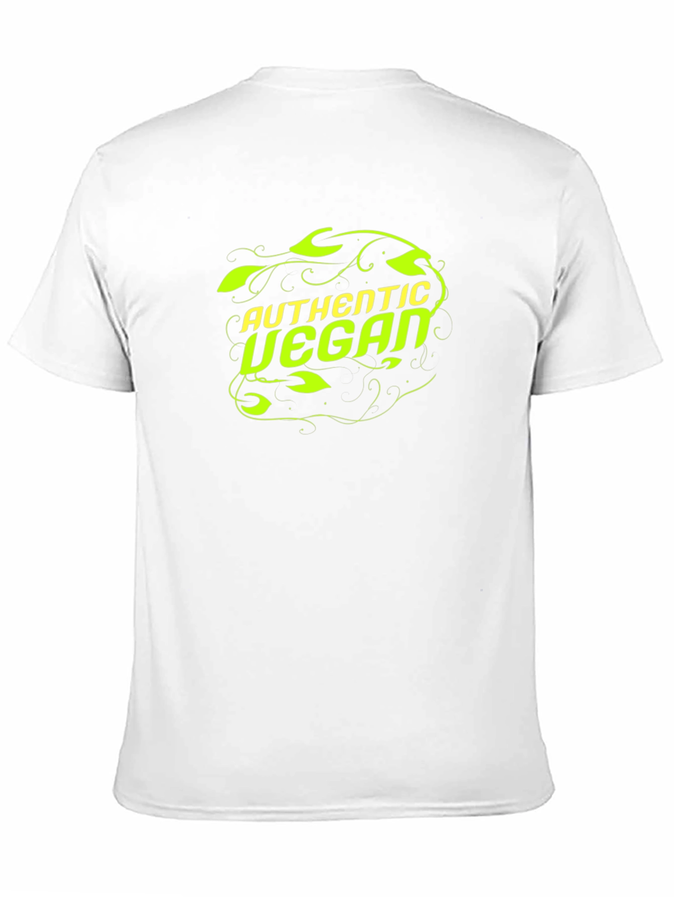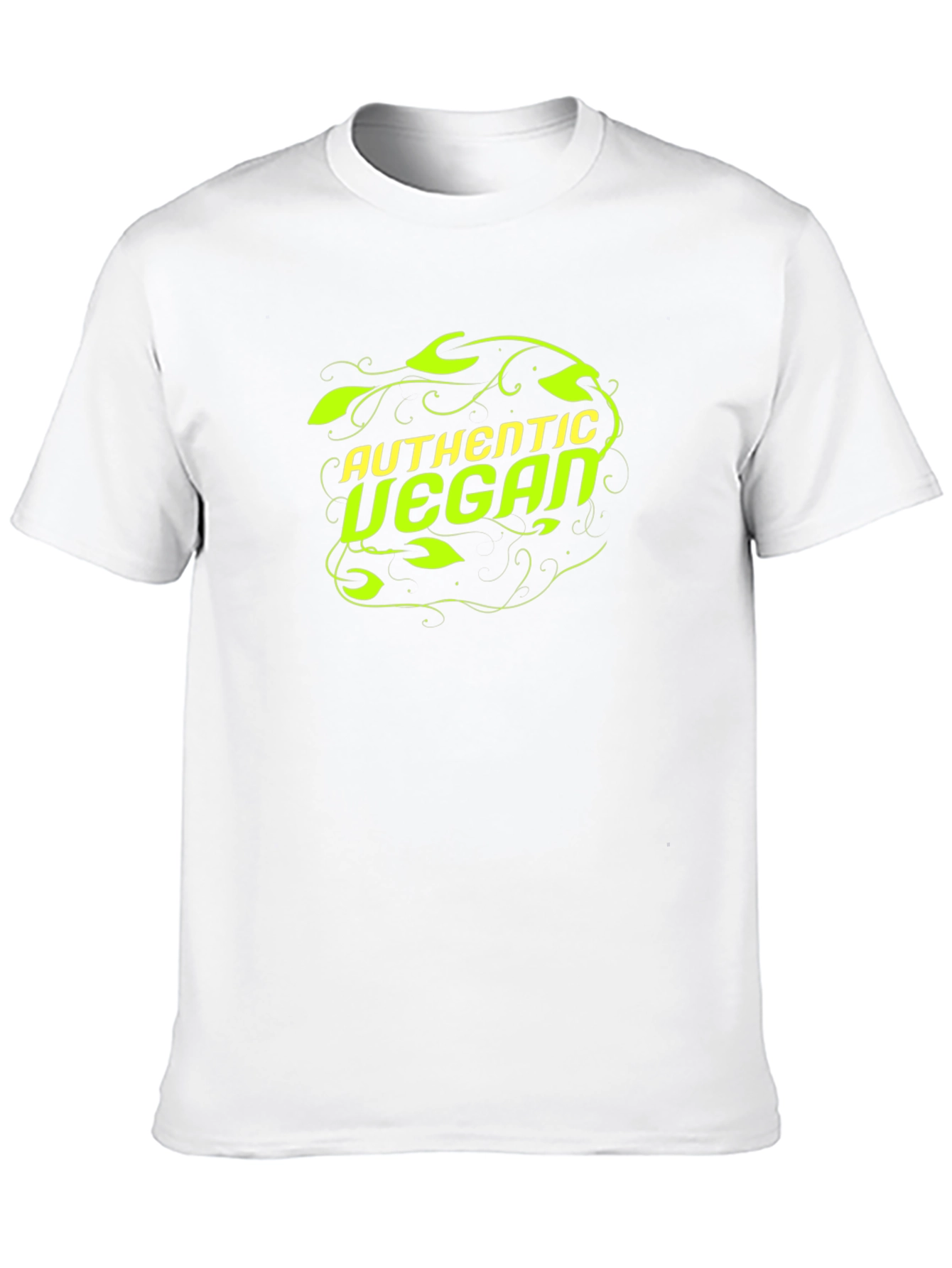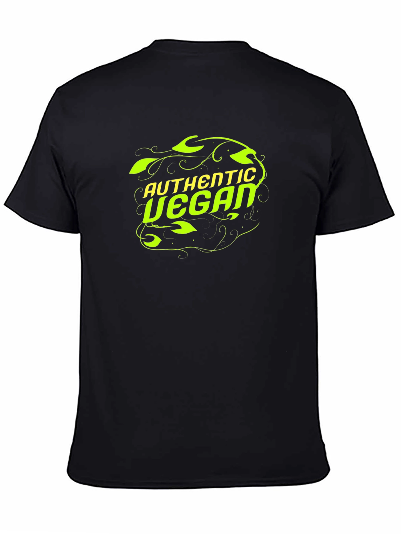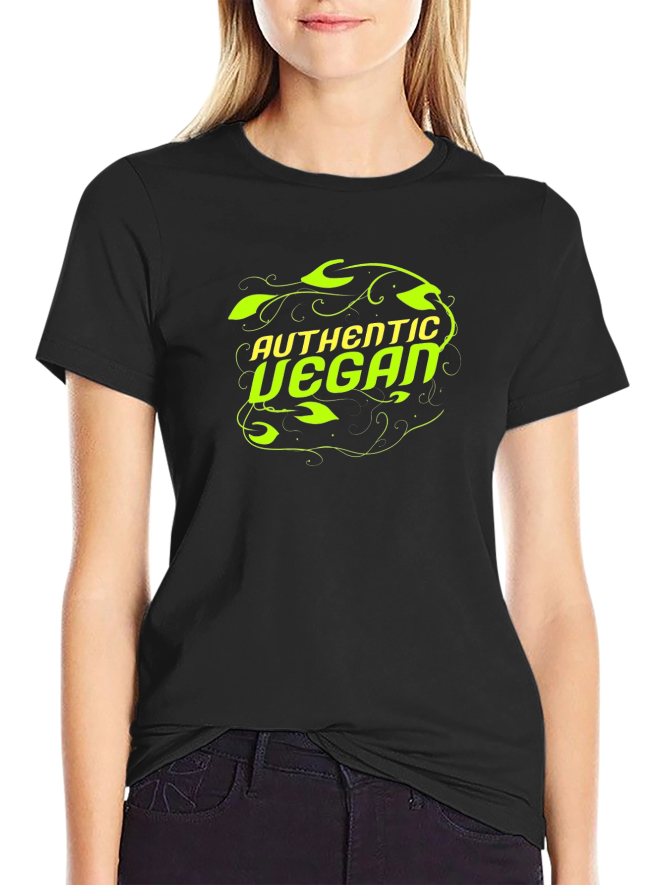 Show off your authentic vegan lifestyle with this stylish black graphic tee. The eye-catching design features the word "AUTHENTIC VEGAN" in a vibrant green font, surrounded by decorative flourishes of leaves and vines. Crafted from soft, comfortable fabric, this tee is perfect for everyday wear. Whether you're hitting the farmers market, grabbing coffee with friends, or simply lounging at home, this shirt is a fun way to make a statement. With its unique design and comfortable fit, this tee is a must-have for any conscious vegan. Get yours today and let the world know what you stand for!