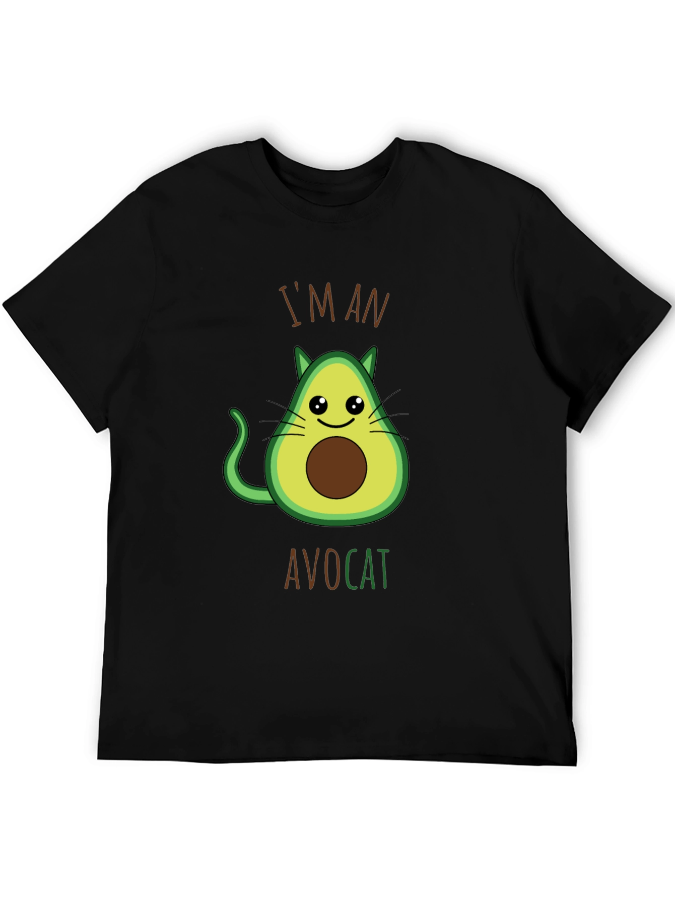 This black t-shirt features a whimsical and playful design, perfect for avocado and cat lovers. The graphic showcases a cute 'avocat' character - a delightful blend of an avocado and a cat. Above the image, text reads 'I'M AN' and below it 'AVOCAT'. Ideal for casual wear, this tee adds a touch of humor and personality to any outfit. Made from comfortable fabric, it's perfect for everyday use, casual outings, or as a fun gift for friends and family. Express your unique style with this eye-catching and conversation-starting t-shirt.