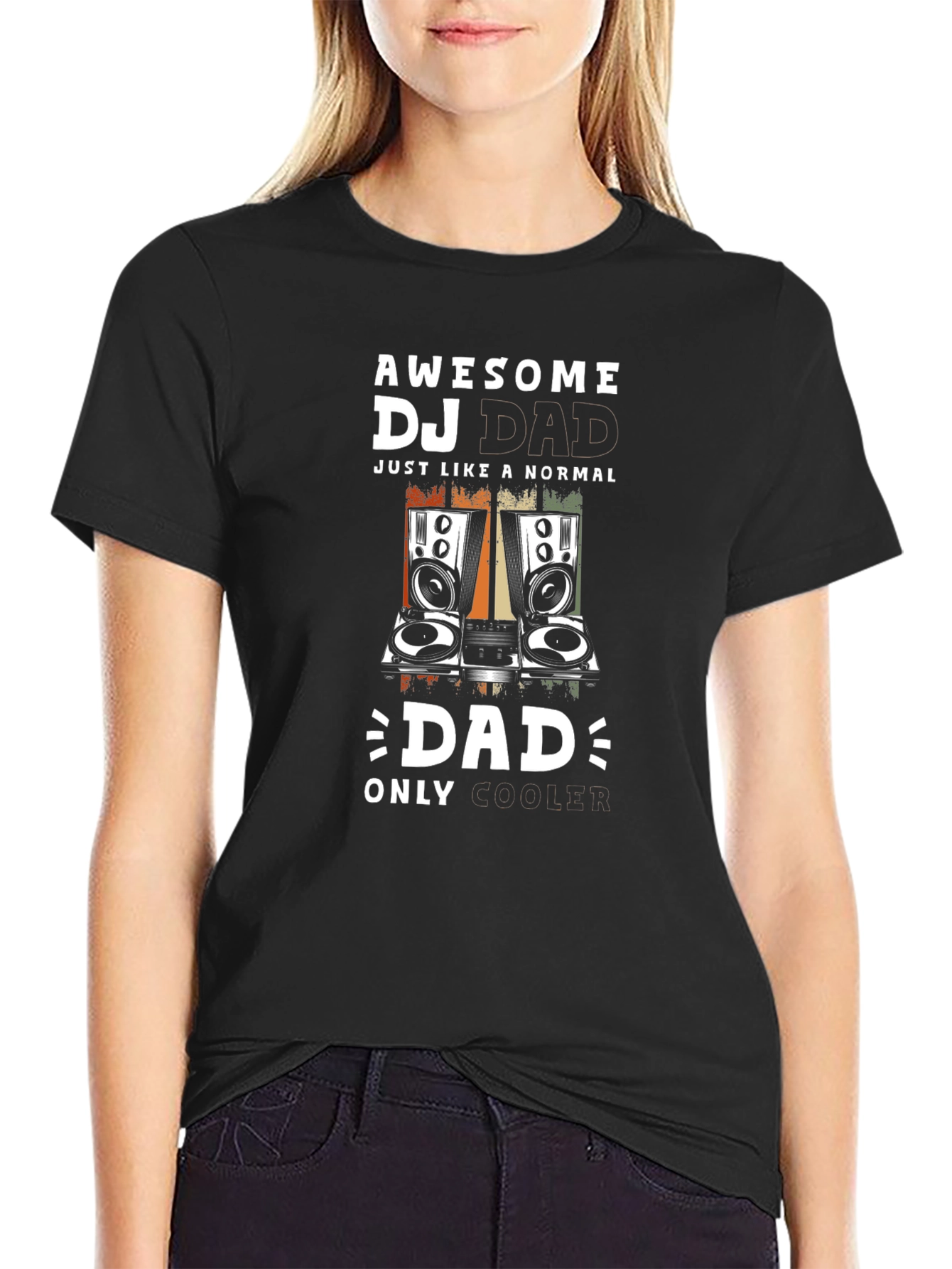 Show your DJ pride with this awesome graphic T-shirt. Featuring a bold "Awesome DJ Dad" design with vintage-inspired turntables, this black tee is perfect for music-loving dads. The cool design includes a clever twist with "Just Like a Normal Dad" followed by "Dad Only Cooler," making it a fun and unique gift. Made from comfortable, breathable fabric, this shirt is ideal for everyday wear, DJ gigs, or casual outings. Let everyone know you're a dad who knows how to spin the tunes in style!