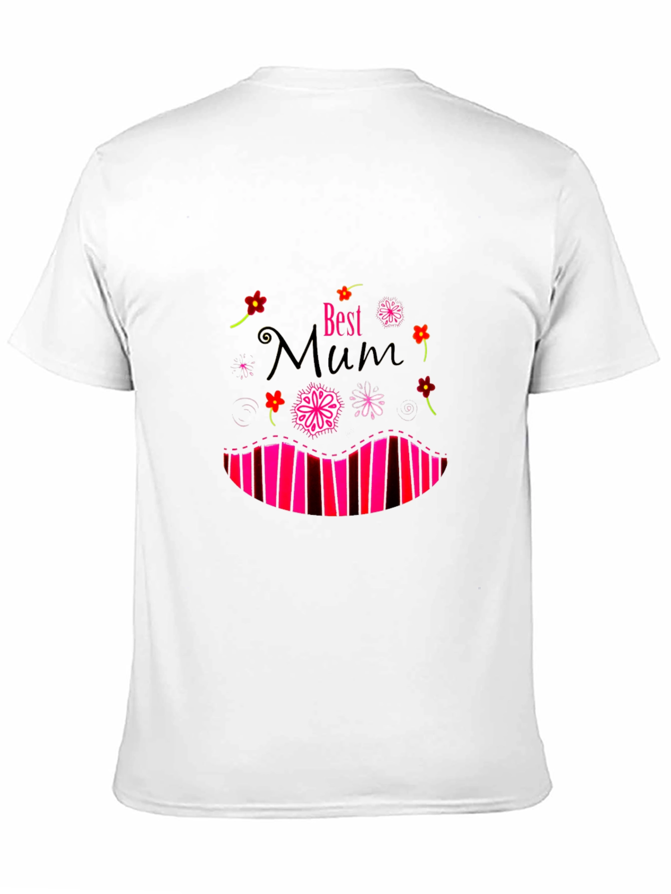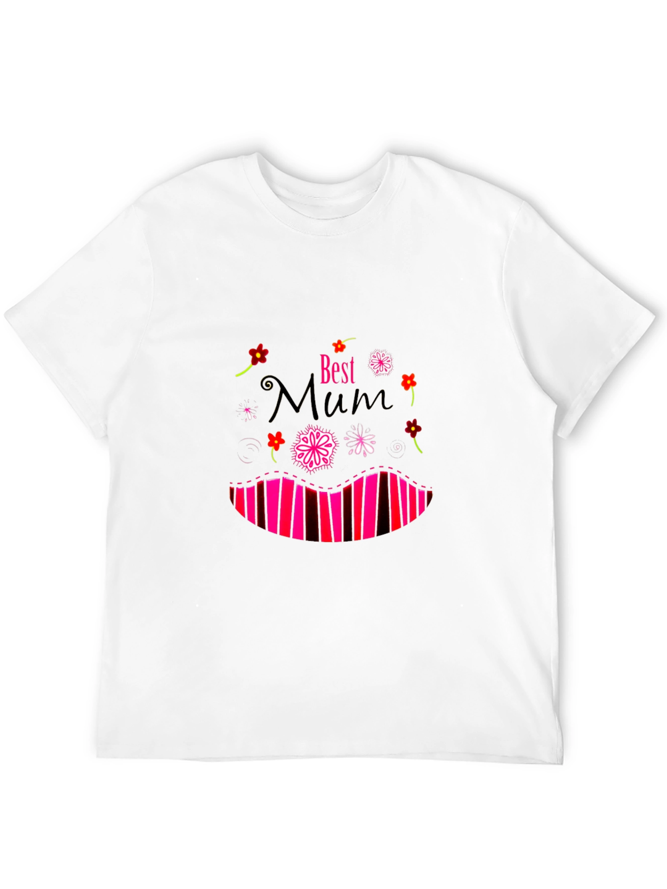 Show your appreciation with this stylish black t-shirt featuring a unique 'Best Mum' design. The graphic includes floral accents and a bold, striped motif in shades of pink and red, creating a playful and eye-catching look. Made from a comfortable fabric, this shirt is perfect for casual wear. Surprise your mum with a thoughtful gift that celebrates her in style. Ideal for everyday wear, Mother's Day, birthdays, or just because. Get yours today!
