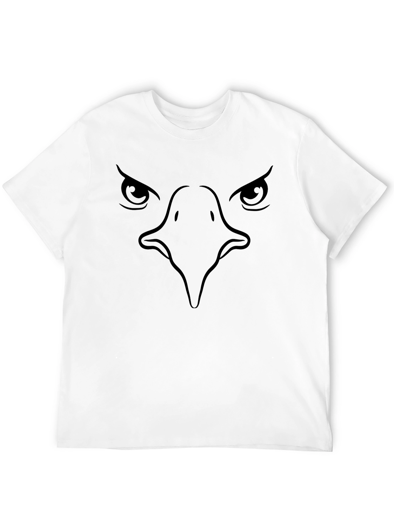 Show your love for birds of prey with this striking black t-shirt. Featuring a bold, minimalist graphic of an eagle's face, this tee is perfect for casual wear. The design is simple yet eye-catching, making it a great conversation starter. The t-shirt appears to be made from a soft, comfortable fabric, ensuring all-day comfort. Ideal for everyday wear, concerts, or outdoor events. A must-have for any bird enthusiast's wardrobe. Available in various sizes.