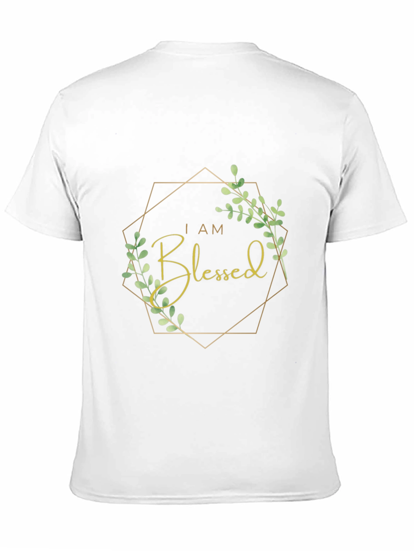 This classic black t-shirt features a beautifully designed "I am Blessed" graphic, making it a meaningful and fashionable choice. The design incorporates elegant gold lettering and delicate greenery, framed by a geometric shape, adding a touch of sophistication. Made from what appears to be a soft, comfortable fabric, this tee is perfect for everyday wear, casual outings, or expressing your gratitude and positive outlook. It pairs well with jeans, shorts, or skirts, making it a versatile addition to your wardrobe. This inspirational tee offers both style and comfort.