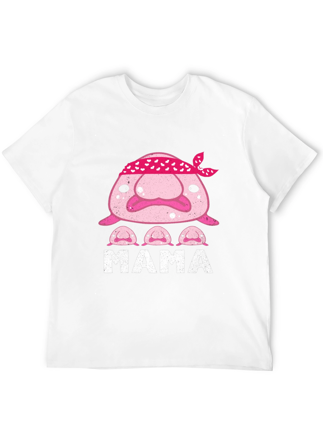 Show your love for quirky sea creatures with this adorable Blobfish Mama T-Shirt. Made from a soft, breathable fabric, this black tee features a cute design of a mama blobfish wearing a pink bandana with hearts, and three baby blobfish underneath. The word "MAMA" is printed in bold white letters, making it a perfect gift for any blobfish-loving mom. This comfortable and stylish t-shirt is ideal for casual wear, family outings, or as a fun conversation starter. Whether you're a marine biology enthusiast or simply appreciate unique and humorous apparel, this Blobfish Mama T-Shirt is sure to become a favorite in your wardrobe.