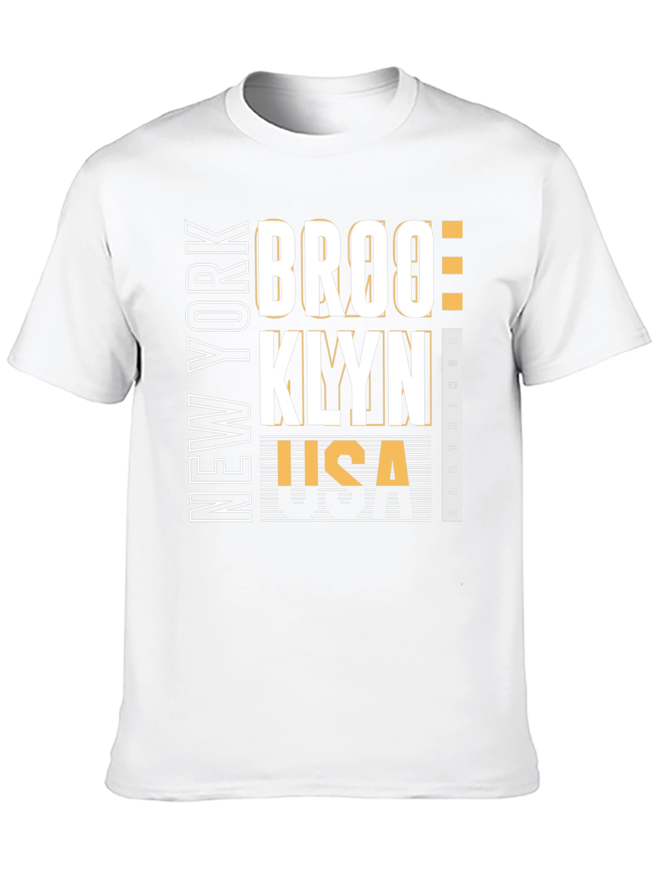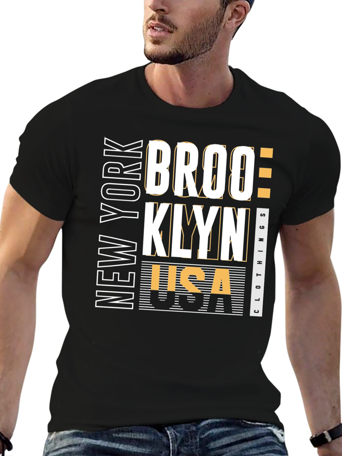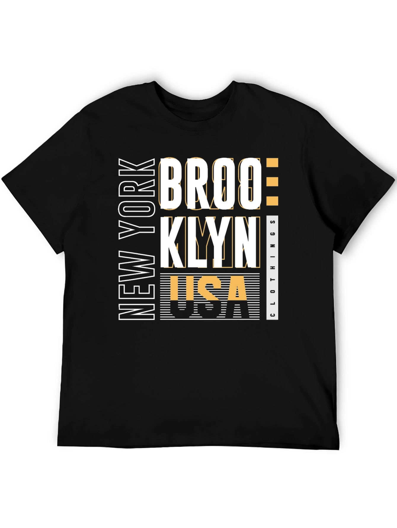 Show off your city pride with this stylish black graphic tee. Featuring a bold 'BROOKLYN NEW YORK' design with 'USA Clothing' details, this shirt is perfect for everyday wear. The crisp white and gold lettering pops against the black backdrop, creating a modern, eye-catching look. Made from a comfortable-looking fabric, this tee is ideal for casual outings, urban adventures, or just lounging around. Elevate your wardrobe with this trendy and unique piece. Get yours today!