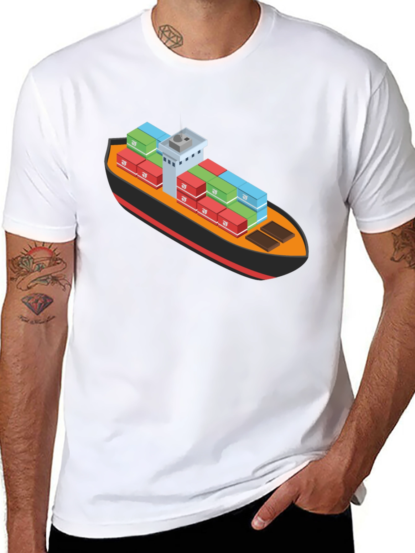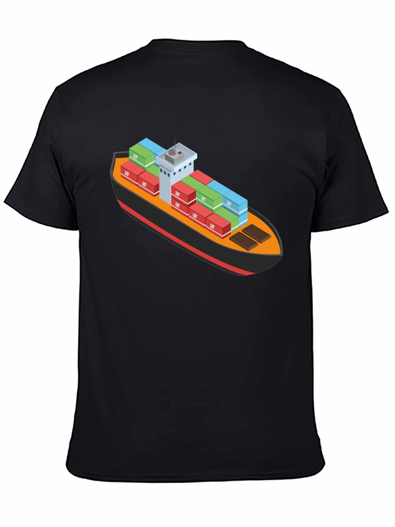 This stylish black t-shirt features a vibrant, eye-catching graphic of a cargo ship loaded with colorful containers. The cartoonish design gives it a playful, modern feel. Made from a comfortable cotton blend, this tee offers both style and comfort for everyday wear. The classic crew neck and short sleeves make it a versatile addition to any wardrobe. Perfect for casual outings, weekend adventures, or simply relaxing at home, this tee is a great way to express your unique personality and love for maritime themes. Pair it with jeans, shorts, or joggers for a cool and effortless look.