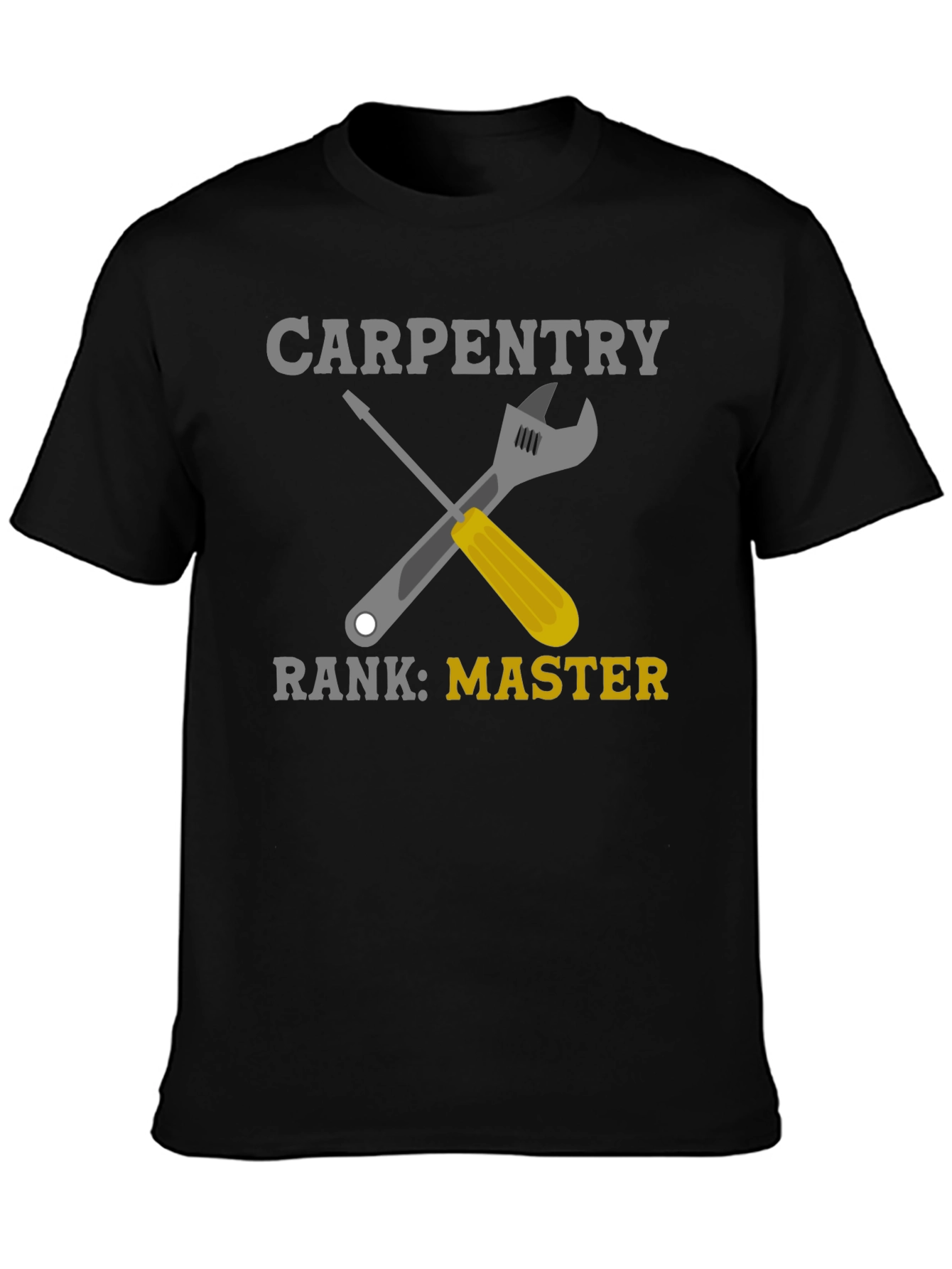 Show off your carpentry skills with this unique t-shirt! This black tee features a crossed screwdriver and wrench graphic, topped with "Carpentry" and "Rank: Master" text. Perfect for carpenters, woodworkers, or anyone who appreciates the craft. This shirt makes a great gift for birthdays, holidays, or any special occasion. Made from comfortable materials for everyday wear. Let everyone know you are a master carpenter with this awesome t-shirt!