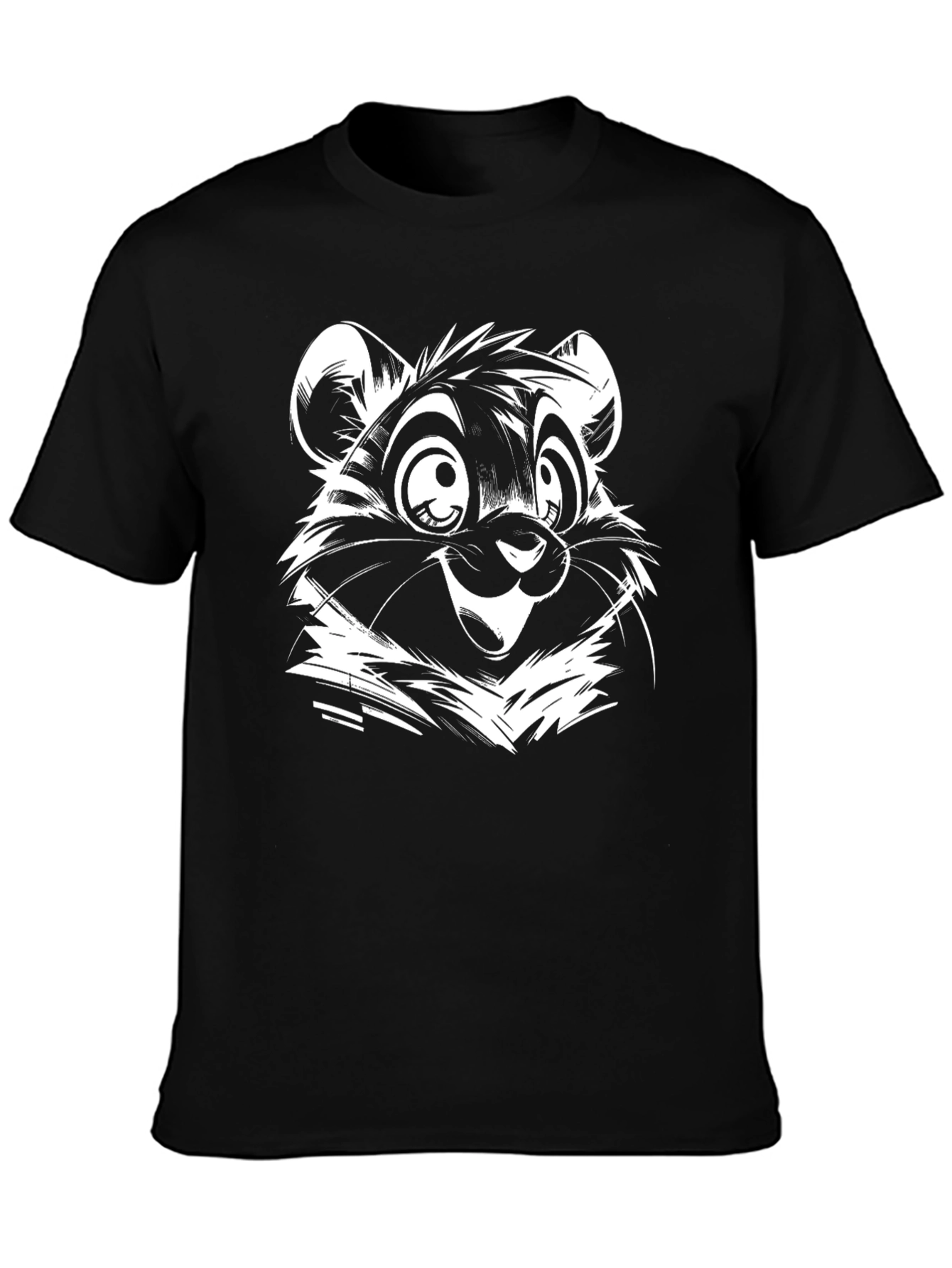 Show off your fun side with this black cotton t-shirt featuring a striking white cartoon bear graphic. The design showcases a whimsical bear face with expressive eyes and a playful grin. Made from comfortable cotton, this tee is perfect for everyday wear, casual outings, or as a statement piece in your wardrobe. The high-contrast graphic ensures you'll stand out from the crowd, while the classic fit provides all-day comfort. Pair it with jeans, shorts, or a skirt for a versatile, trendy look. A must-have for cartoon lovers and anyone looking to add a touch of fun to their style.