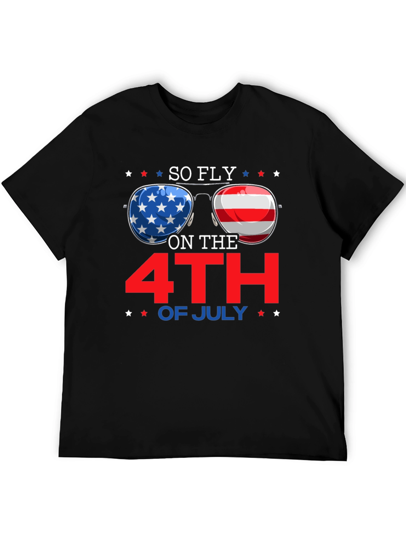 Show your patriotic spirit with this "So Fly on the 4th of July" t-shirt! This black tee features a bold and vibrant graphic with sunglasses reflecting the American flag. The festive design includes patriotic stars and the phrase "So Fly on the 4th." Made from a soft, comfortable fabric, this t-shirt is perfect for celebrating Independence Day, summer barbecues, and showing off your love for the USA. The vibrant print ensures you'll stand out in any crowd. Get ready to celebrate in style with this eye-catching tee!