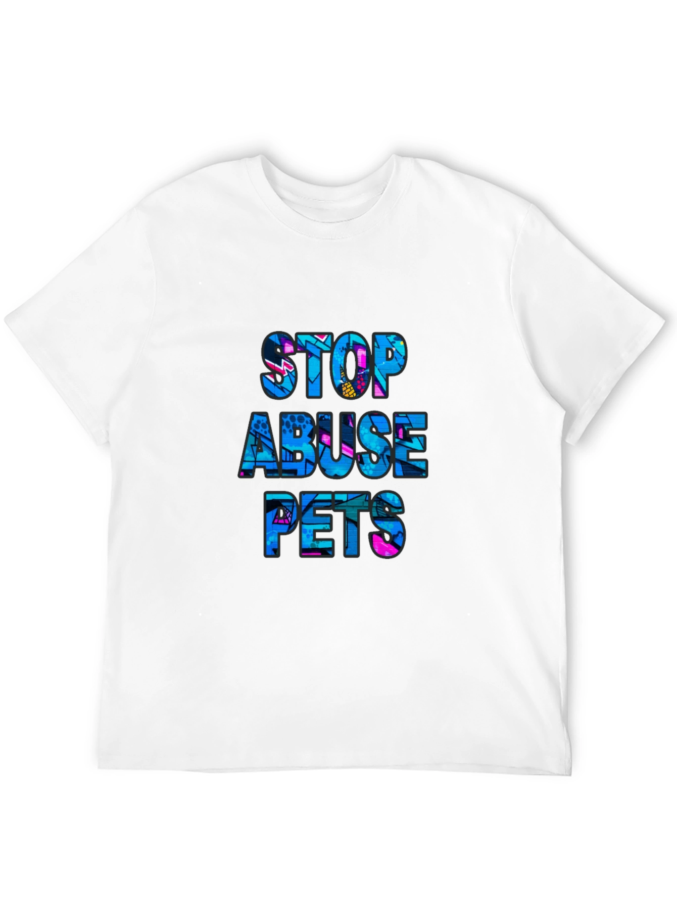 Show your support with this eye-catching black t-shirt. The bold 'STOP ABUSE PETS' graphic makes a powerful statement, featuring a modern, colorful pattern within the letters. Made from a comfortable, breathable fabric, this tee is perfect for everyday wear. Whether you're running errands or attending a rally, let your wardrobe reflect your values and help spread awareness about animal welfare. Get yours today and wear your heart on your sleeve!