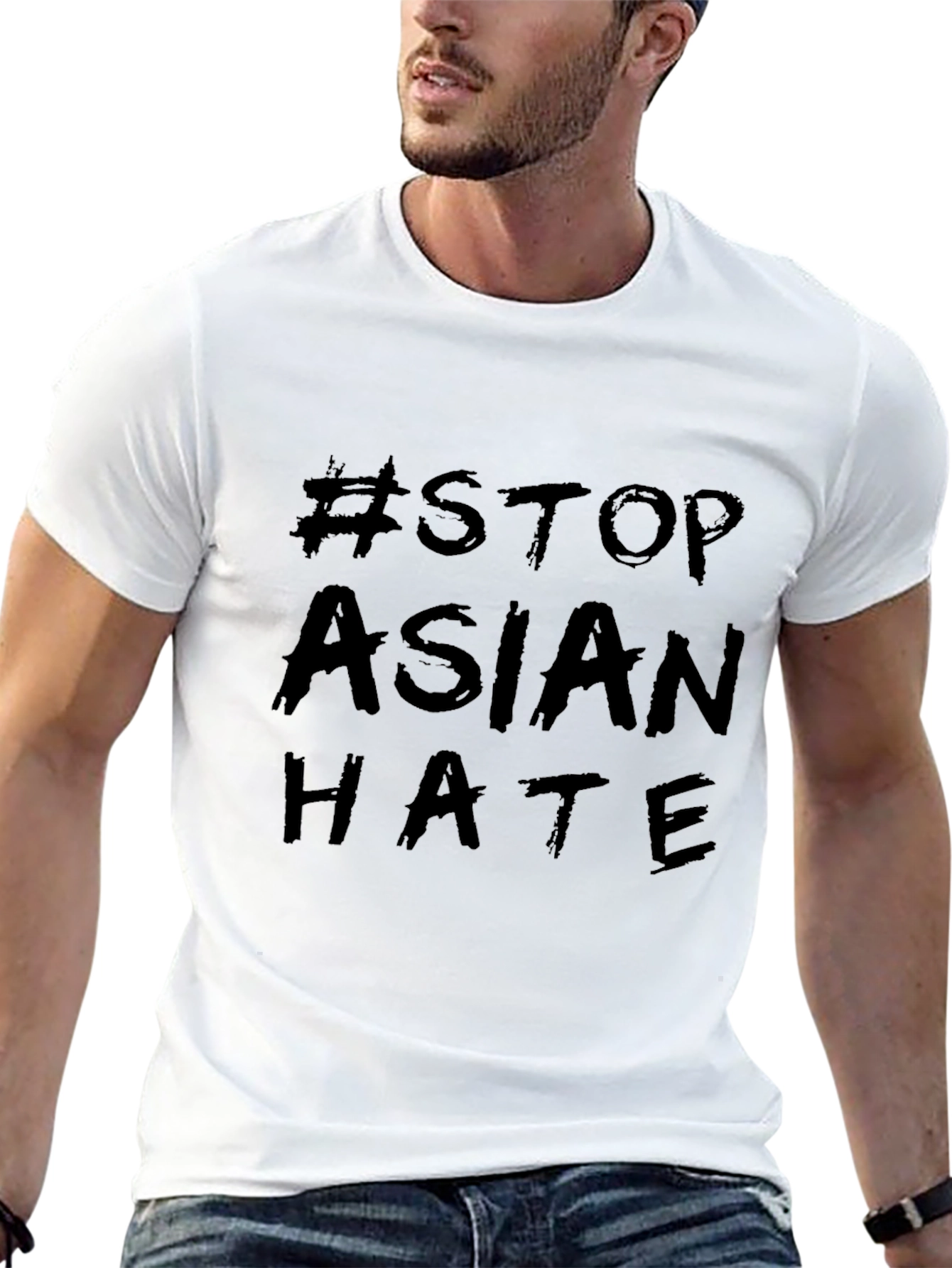 Show your support with this powerful black t-shirt featuring the "#STOP ASIAN HATE" message. Made from what appears to be a comfortable, breathable fabric, this classic fit tee is designed for both style and impactful statements. The bold print ensures the message is clearly visible. Perfect for rallies, protests, everyday wear, or as a thoughtful gift, this t-shirt allows you to express solidarity and raise awareness. Wear your values with this meaningful and impactful garment. It’s more than just a shirt; it's a conversation starter and a symbol of unity.