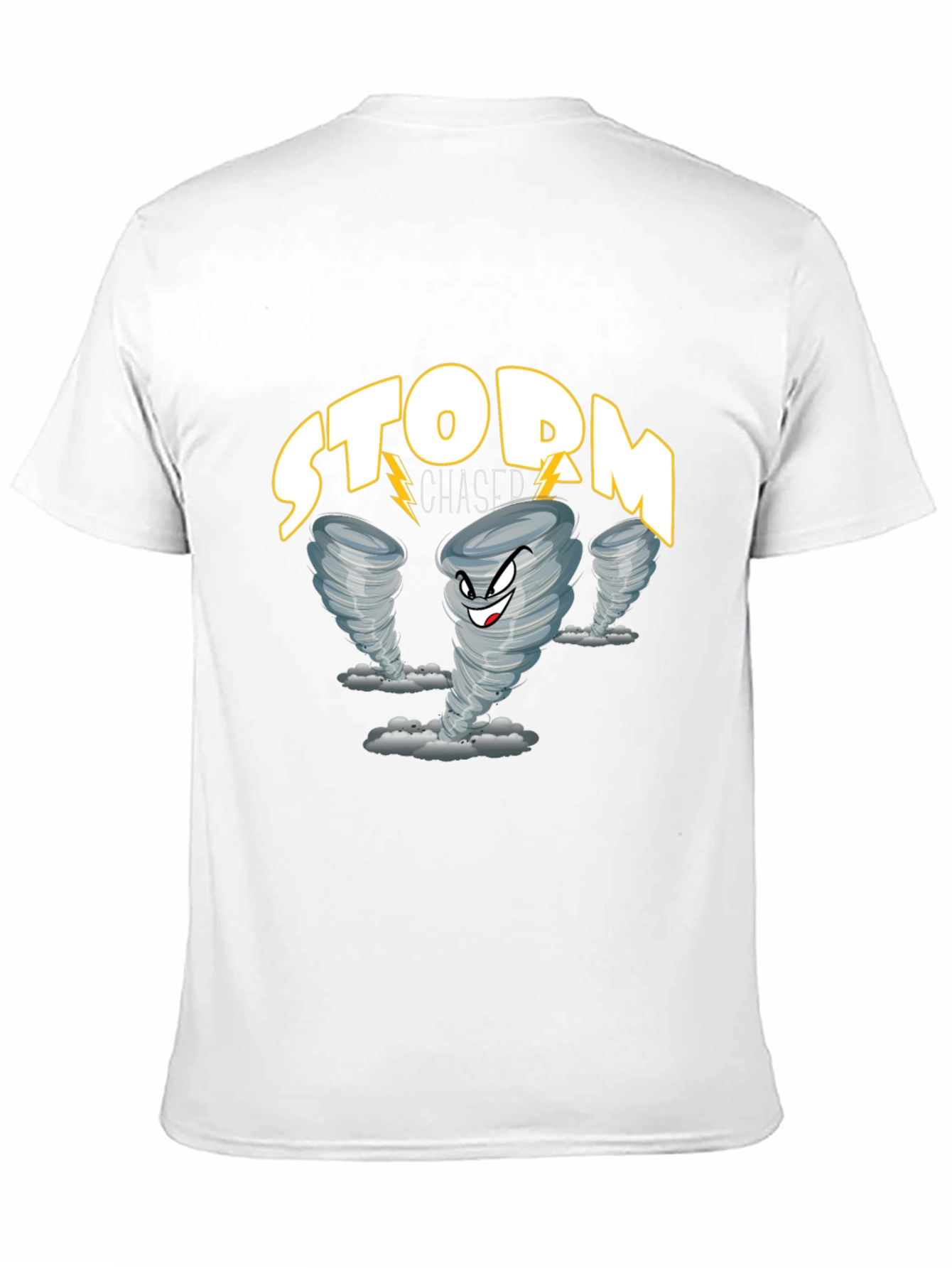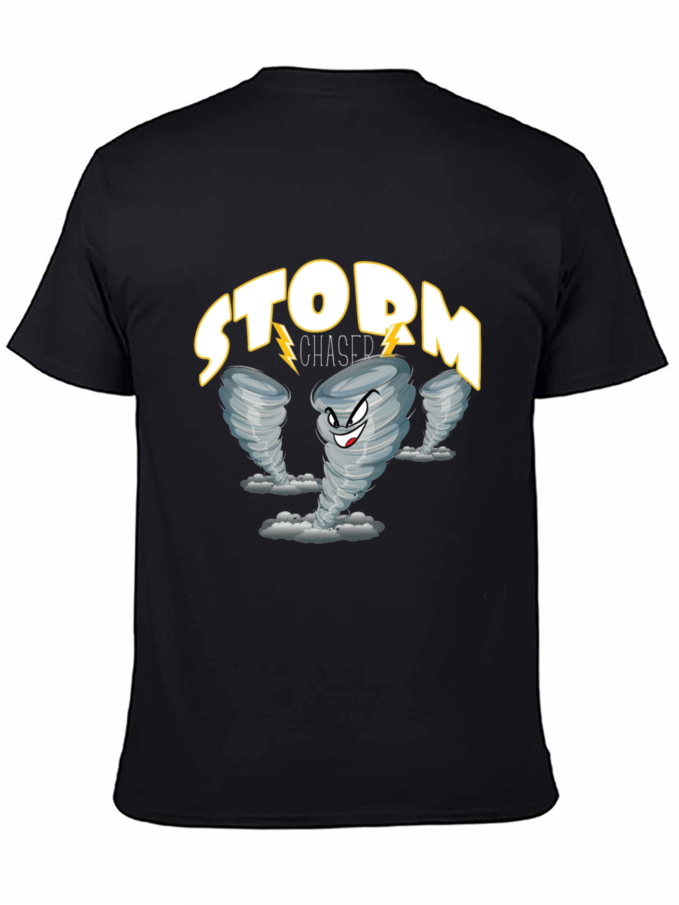 Show off your adventurous side with this eye-catching Storm Chaser graphic tee! This black t-shirt features a bold and playful cartoon design of a tornado with lightning bolts, set against the words 'Storm Chaser' in a striking yellow font. The tee is made from a comfortable-looking fabric, perfect for everyday wear. Whether you're a weather enthusiast or just love unique graphic tees, this shirt is sure to make a statement. Great for casual outings, themed parties, or simply expressing your personality.