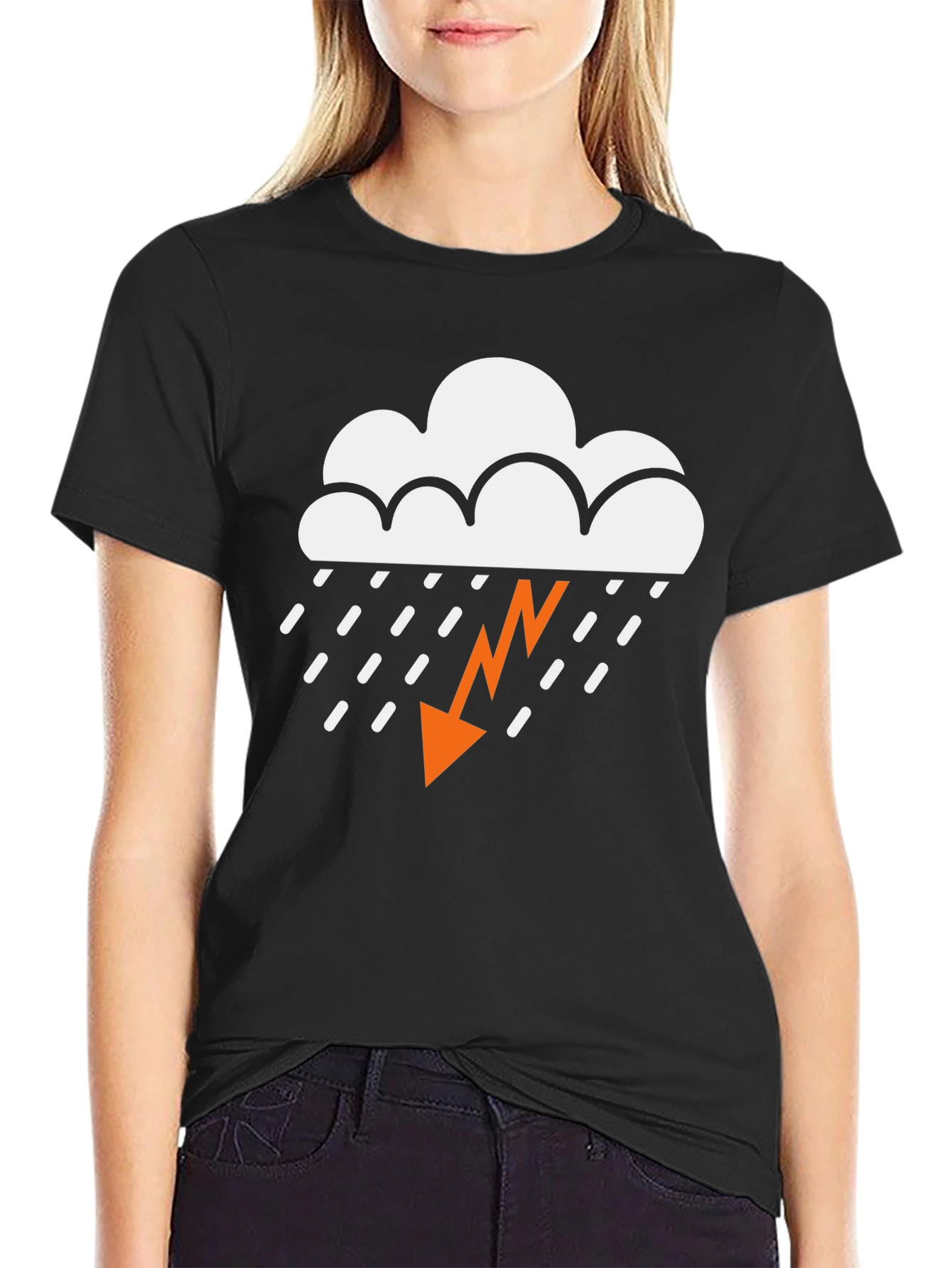 Brave the elements in style with this eye-catching black t-shirt featuring a bold storm cloud graphic. The design showcases a fluffy white cloud unleashing a vibrant orange lightning bolt amidst a shower of rain. Made from comfortable, breathable cotton, this tee is perfect for everyday wear. The striking graphic makes it a fun conversation starter and a great way to express your unique personality. Whether you're heading to a casual hangout, running errands, or simply relaxing at home, this t-shirt will keep you comfortable and stylish. Stand out from the crowd with this statement piece!