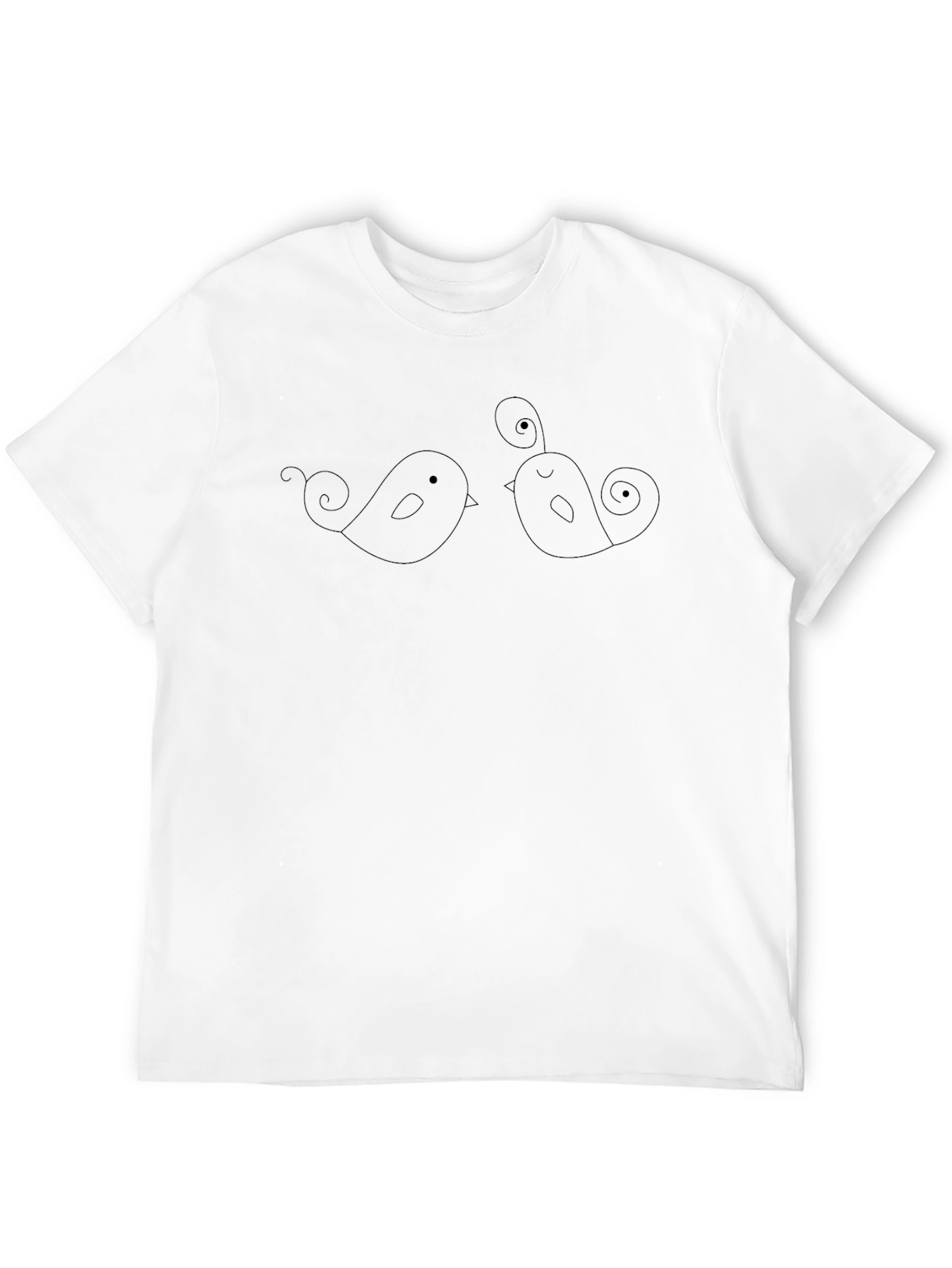 This classic black t-shirt features a unique graphic of two stylized birds on the chest. The simple line drawing gives this top a playful yet minimalist look. Made from a soft, breathable fabric, this shirt offers all-day comfort and style. The relaxed fit makes it ideal for casual wear, whether you're running errands, meeting friends, or lounging at home. Dress it up with a blazer or keep it casual with jeans - this versatile tee is sure to become a wardrobe staple. A must-have for bird lovers and those who appreciate unique, eye-catching designs.